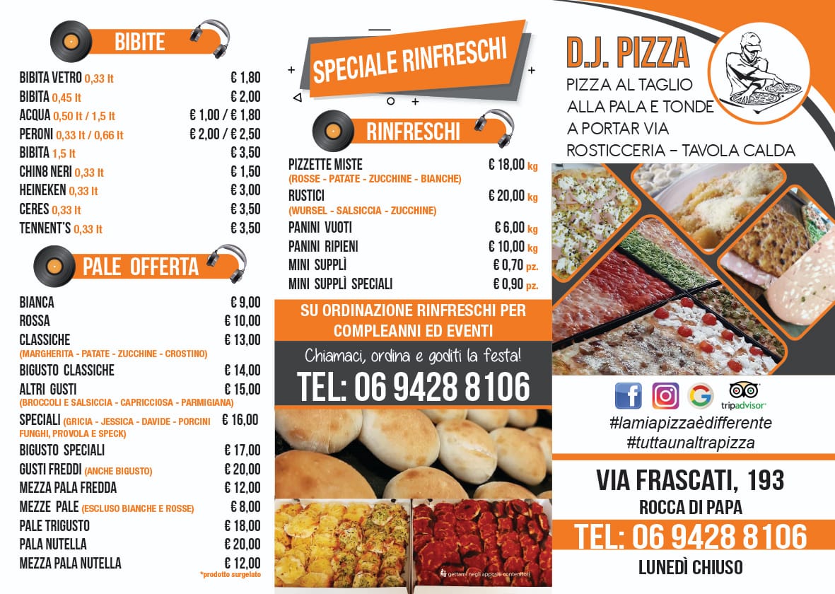 At D.j. Pizza Menu, every bite feels like a journey to Italy, right in the heart of Rocca di Papa. Situated on Via Frascati, this cozy spot invites you to explore a menu bursting with fresh, flavorful options. Whether you're in the mood for a classic Margherita or craving something more adventurous, there’s a pizza for every taste. Each pie is made with the finest ingredients, from the homemade dough to the rich, tangy sauces that bring every topping to life. And don't forget about the sides-perfectly seasoned and just as satisfying as the main event. The casual, welcoming vibe of D.j. Pizza makes it the ideal place for a laid-back meal with friends or family.